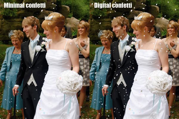 Often the bride and grooms’ finest facial expressions come simply after the majority of the confetti has been thrown; their faces will be less obscured and they will not be squinting attempting to avoid getting confetti in their eyes and mouth. The obvious problem with this is that there will now be little confetti in the image. The good news is, you can add it in utilizing image-editing software.
